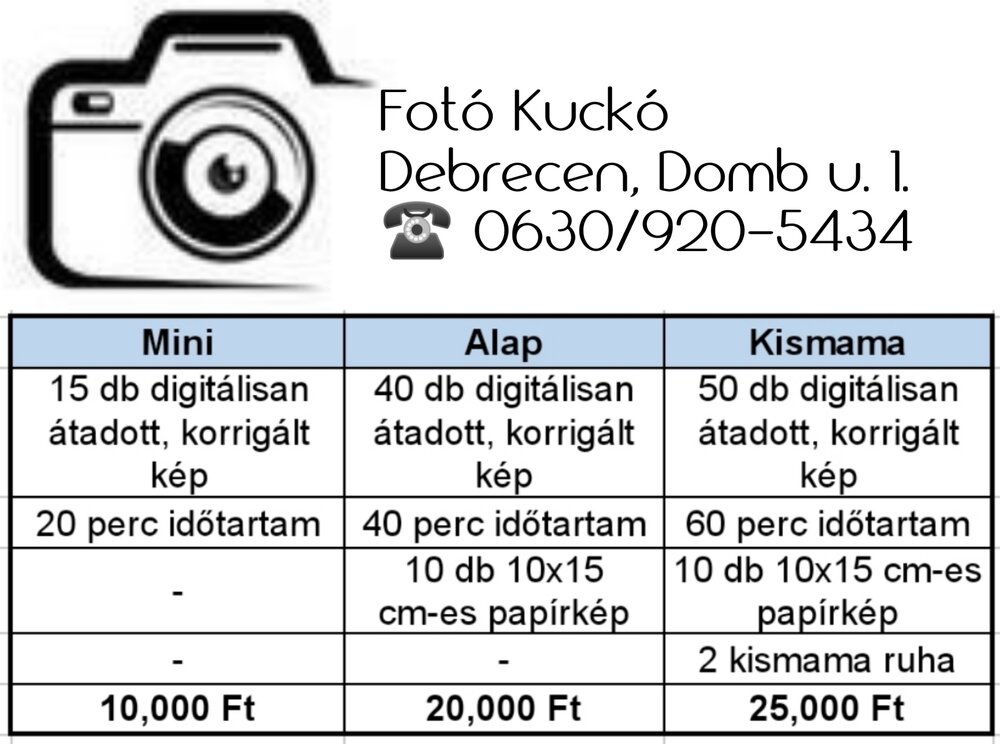 Debrecenben a Domb utca 1. szám alatt az első emeleten a Hangyaboly Játszóház felett található egy kis hely, amit Kuckónak neveztem el, 45 négyzetméteres  teremben rendeztem be a fotó műhelyem.